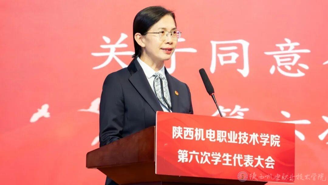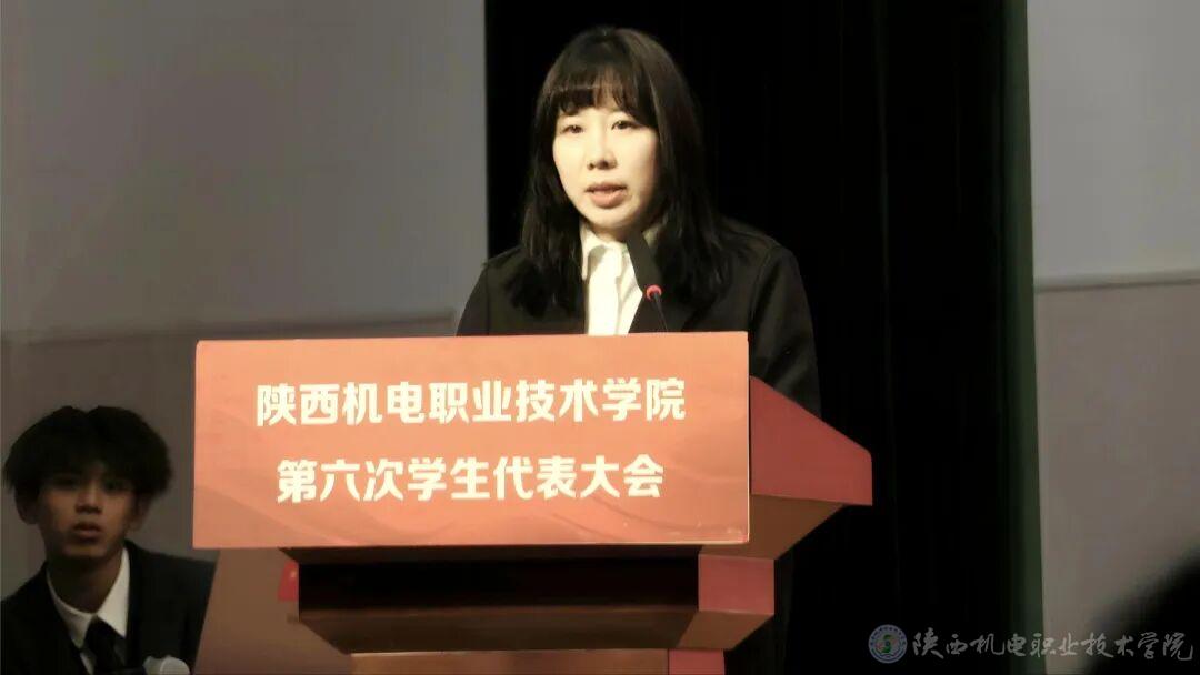 第二项,张琴宣读《关于同意召开陕西机电职业技术学院第六次学生代表大会的批复》。