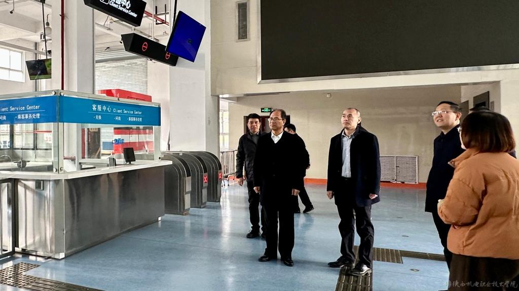 12月2日上午,陕西机电职业技术学院党委书记伊逊智,校党委副书记、校长侯晓方一行,莅临千河校区铁路司机学院检查指导工作。铁路司机学院副院长、党支部副书记王建国随行。