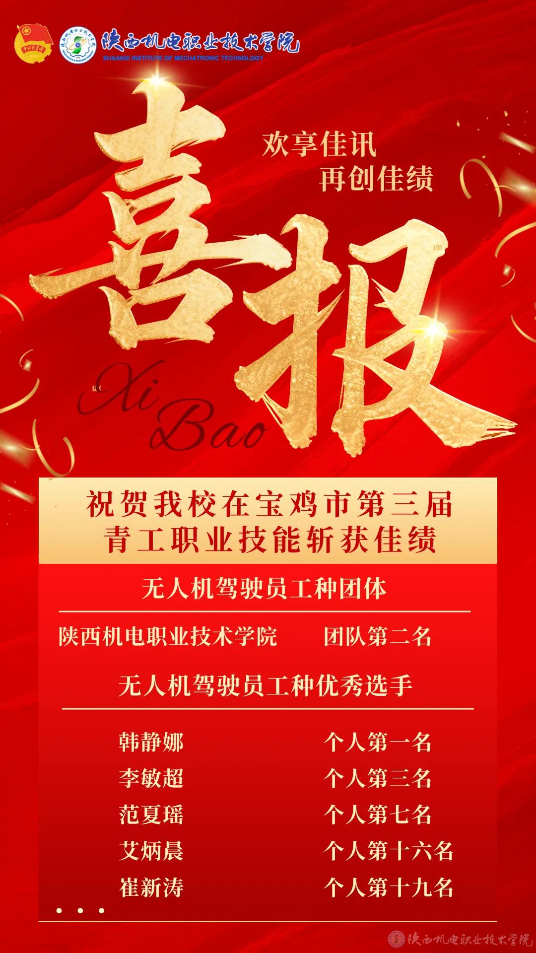 本次大赛中,我校在无人机驾驶员工种表现尤为突出,荣获团体第二名。个人赛场上,韩静娜、李敏超、范夏瑶、艾炳晨、崔新涛5名选手凭借精湛技能跻身该工种前20名,成功入选大赛优秀选手名单,充分展现了学院在相关专业领域的教学实力与人才培养质量。