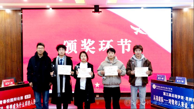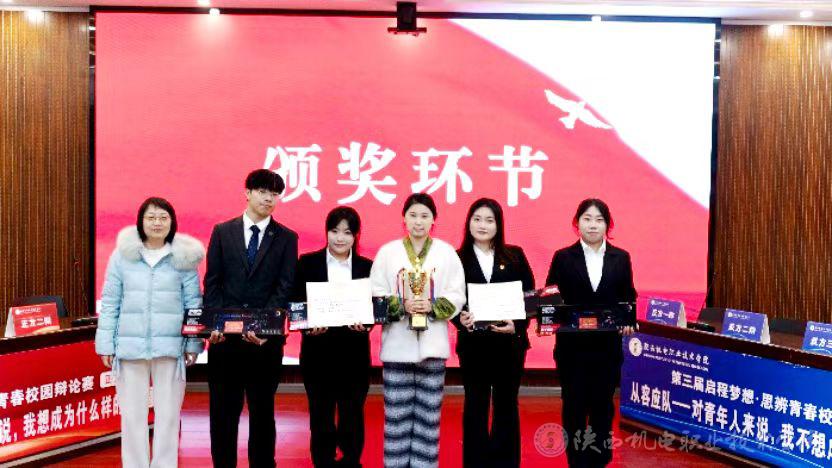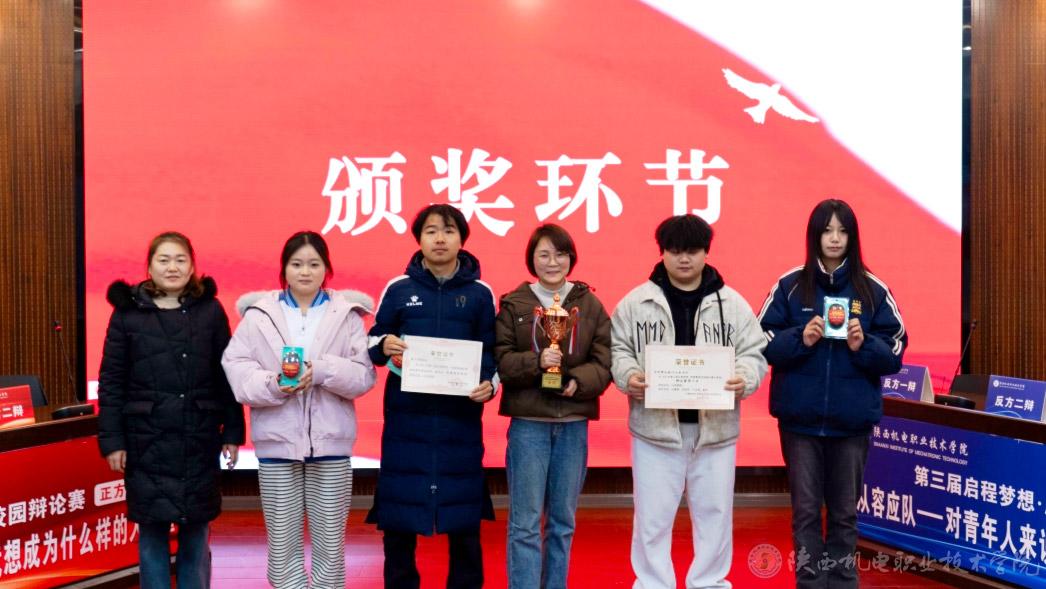 12月24日,陕西机电职业技术学院以“启程梦想·思辨青春”为主题的第三届校园辩论赛决赛暨闭幕式于博学楼111会议室圆满举行。学校党委委员、党委宣传部部长李明出席颁奖仪式,宣布本届比赛闭幕。郭世强、白兰、屈婉蓉、赵娥、齐晓红、陈欢、任婷等老师担任决赛评委。