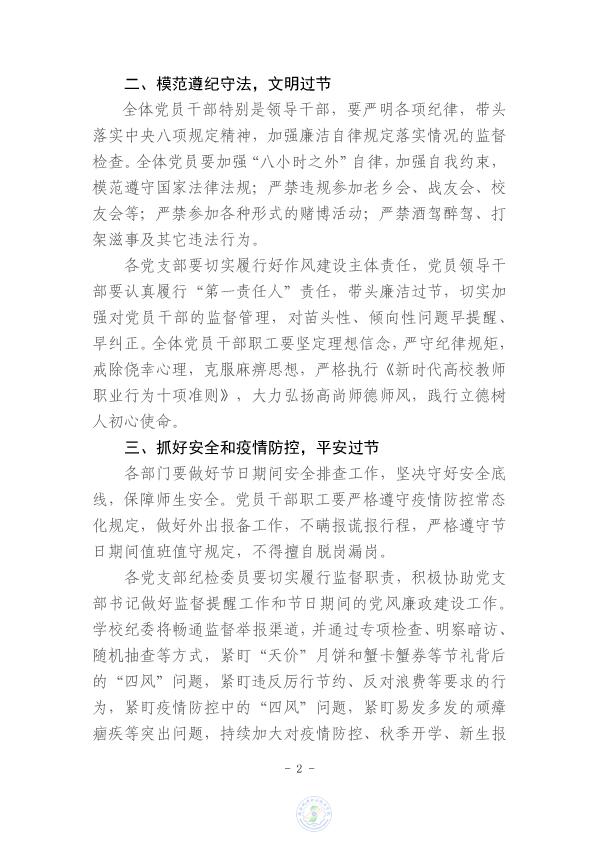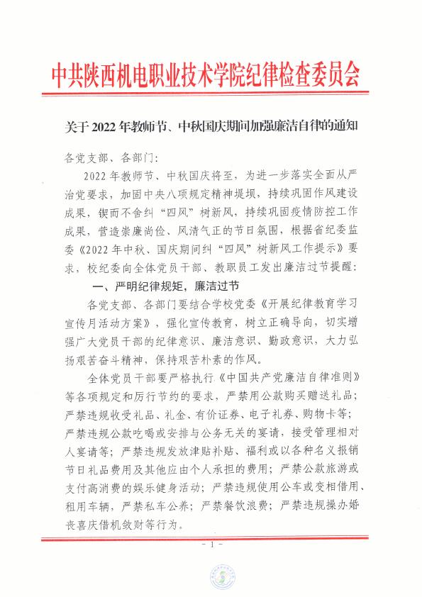 关于2022年教师节、中秋国庆期间加强廉洁自律的通知